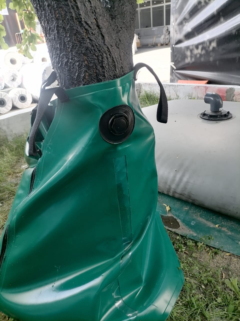 Ce sac se remplit en quelques minutes à l’aide d’un tuyau d’arrosage pour obtenir un lest de 75 kg.